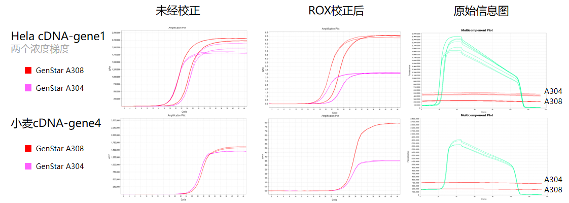 經(jīng)驗證,A308 在 Low ROX 適用儀器上可進行正常校正,且 ROX 校正后效果優(yōu)于 A304。