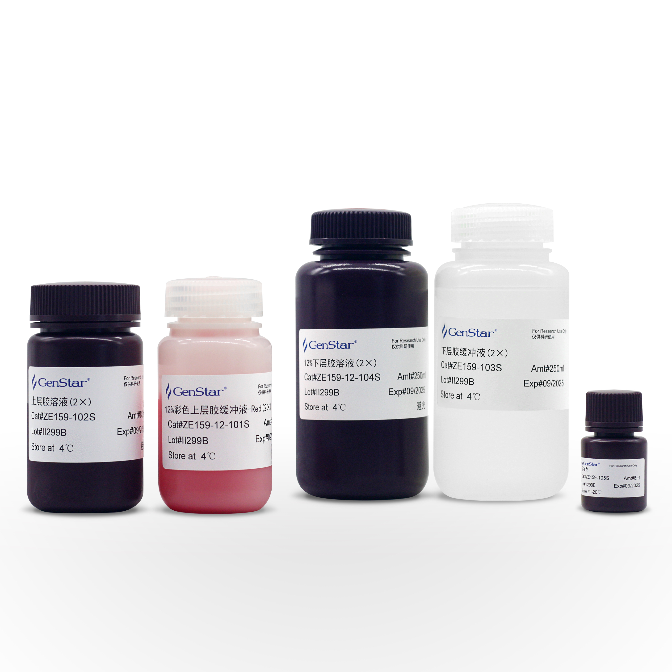 | ZE159-12-101 | 12%彩色上層膠緩沖液-Red(2×) | 80 ml | 4℃ |