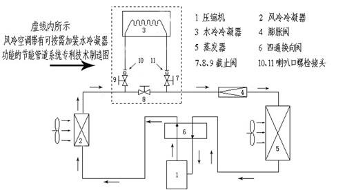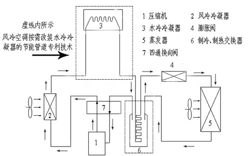 風(fēng)冷空調(diào)可按需加裝水冷凝器節(jié)能管道系統(tǒng)工作原理