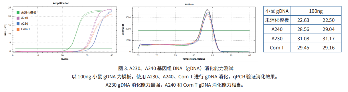 GenStar A230、A240 可有效去除 gDNA,保證擴增結(jié)果的準(zhǔn)確性,避免 gDNA 殘留對 qPCR 結(jié)果的干擾